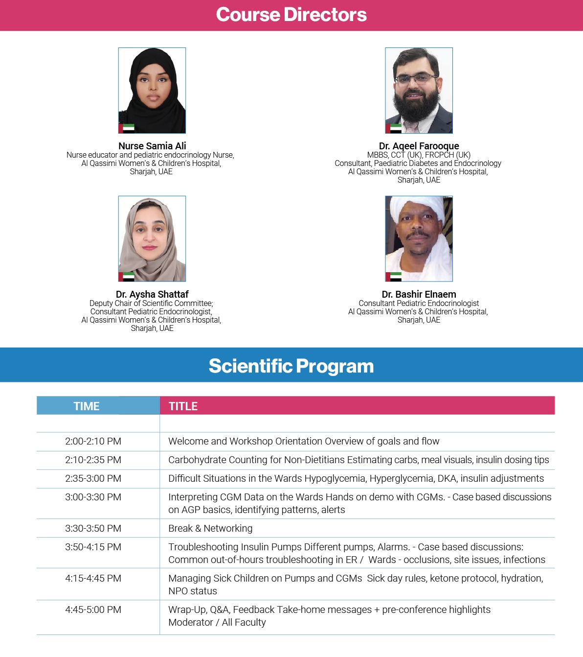 A highly interactive workshop designed to equip frontline healthcare providers with the confidence and essential skills in managing pediatric diabetes. Participants will engage in hands-on training stations on insulin administration, glucose monitoring, and emergency management with a focus on individualized, evidence-based care.
